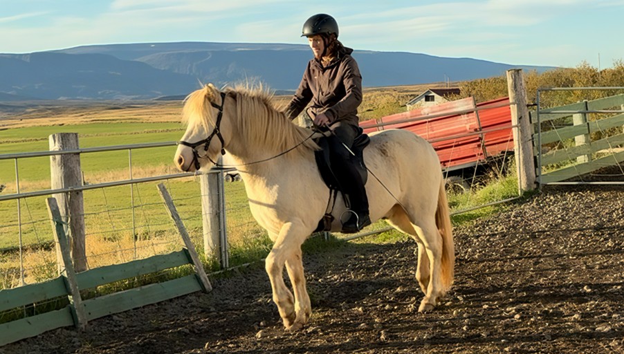 Fölur ist ein 7-jähriger Cremello-Wallach (Smoky Cream) – eine unglaublich seltene und wunderschöne Farbe, dazu noch mit blauen Augen. Ein echtes Wow-Pferd! Er ist gerade erst ganz knapp angeritten und hat nach 2 Jahren Pause sofort gezeigt, wie brav und unkompliziert er ist. Wir haben uns einfach draufgesetzt – und er lief los, als wäre nichts gewesen. Ein Pferd, das zeigt, wie cool und freundlich er wirklich ist.
