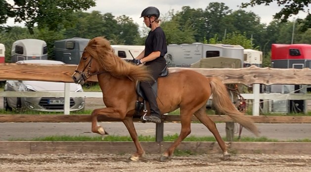 Hjartaprinsessa ist eine wunderschöne und leichtrittige Fünfgangstute, die durch flotte Gänge bei schicken Bewegungen überzeugt. Unter dem Sattel zeigt sie sich bombensicher, brav und mutig. Hjartaprinsessa ist ein richtiges Spaßpferd für etwas geübtere Reiter, auch Jugendliche fühlen sich auf der ausdrucksstarken Stute wohl. Hjartaprinsessa eignet sich für lange Ausritte, Lehrgänge/Turniere, sowie für die Zucht. Eine richtig coole Socke zum Spaß haben!