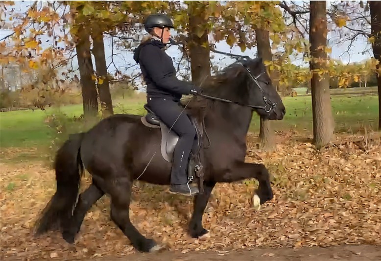 Verkaufspferd bei The Horse Seller Varða – diese wunderschöne, 2018 geborene Rappstute begeistert mit ihrem glänzenden Schwarz, ihrem kleinen Stern und ihrem freundlichen, klaren Wesen. Sie ist fünfgängig veranlagt und zeigt einen bewegungsstarken, leicht zu reitenden Tölt, schöne, getrennte Gänge und bereits gute Ausbildung. Der Rennpass ist erkennbar, aber noch nicht trainiert. Vom Temperament liegt Varða im ruhigen bis mittleren Bereich – angenehm, fein, gut zu treiben und stets kontrollierbar. Sie toleriert Reiterfehler und bleibt dabei freundlich und konzentriert. ✨